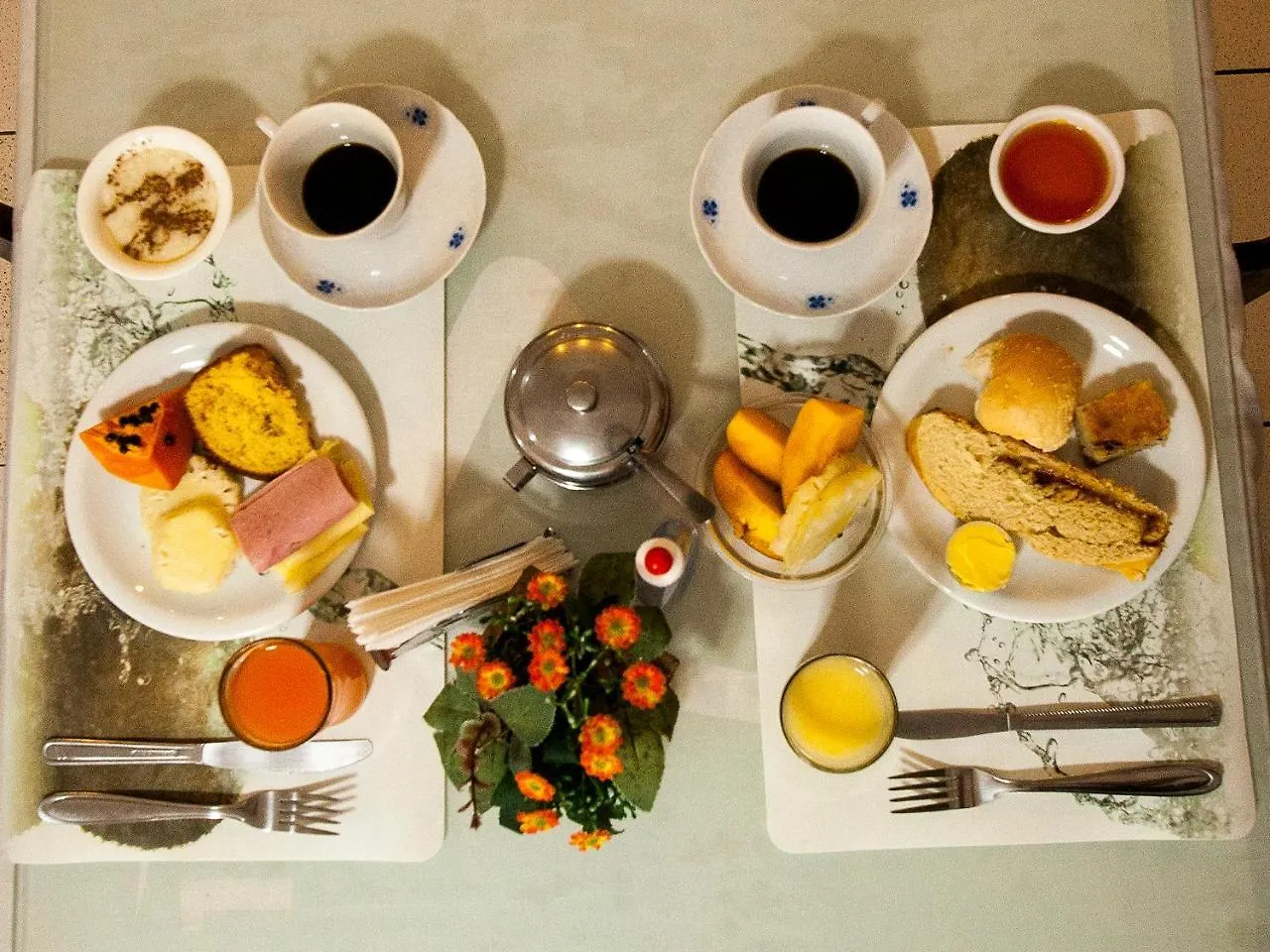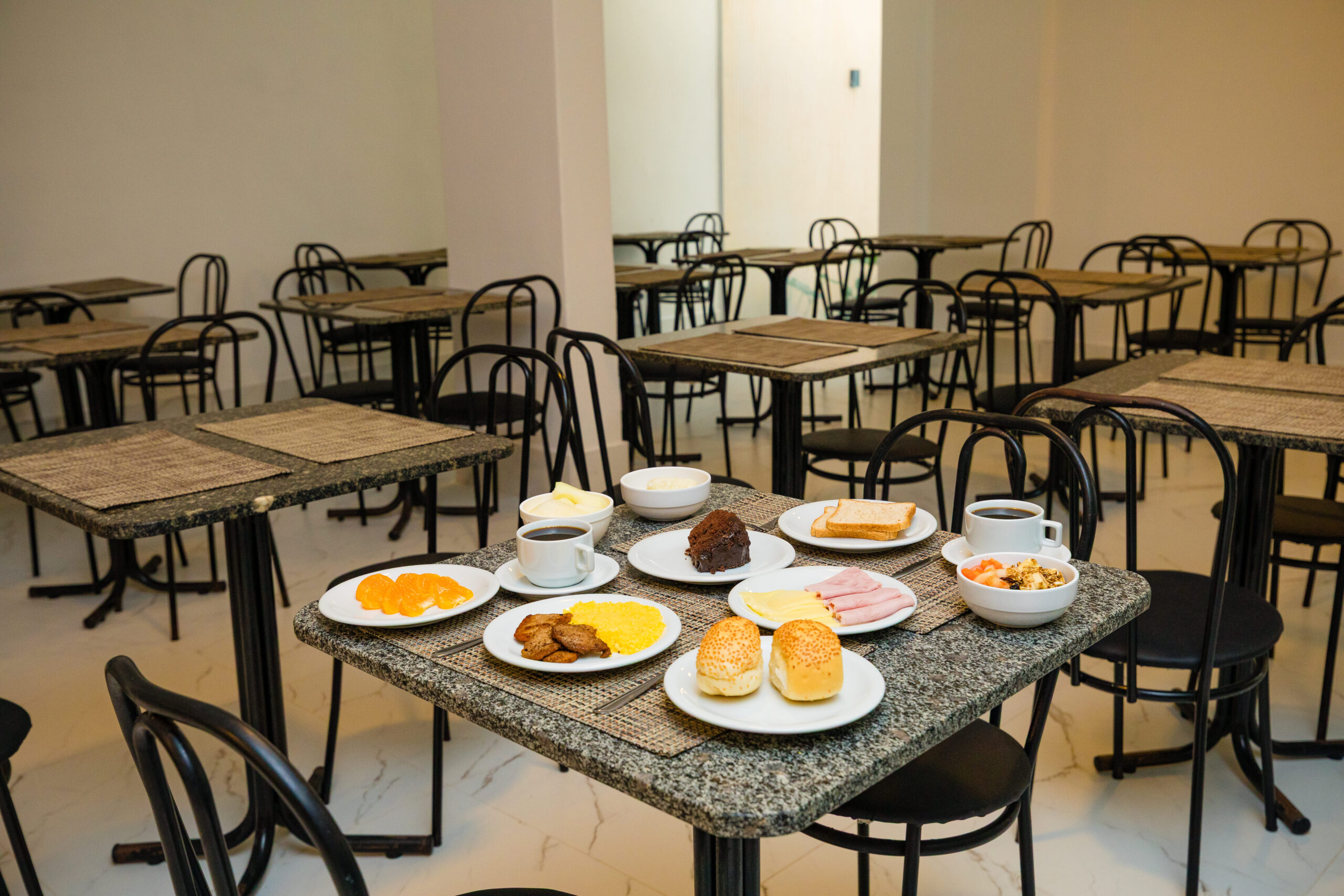 O café da manhã incluso na diária. Contamos com recepção 24h e apartamentos com banheiros privativos, TV, ar condicionado e frigobar. Para sua comodidade o Wi-fi é gratuito nas áreas comuns do Hotel.